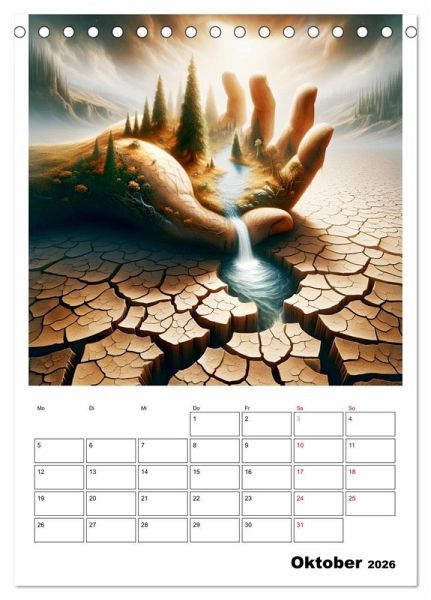 Entdecken Sie unseren einzigartigen Kalender, der mit KI-Technologie erstellt wurde. Jedes Bild zeigt eine aus Erde geformte Hand, die das Kostbarste in ihrer Handfläche hält, umgeben von ausgedörrter, vertrockneter Erde. Dieser Kalender ist mehr als nur ein Zeitmesser, er ist eine eindringliche Botschaft an uns alle, mehr für die Natur zu tun. Lassen Sie sich jeden Monat inspirieren und daran erinnern, wie wichtig es ist, unseren Planeten zu schützen. Werden Sie ein Mitwirkender der Veränderung.
