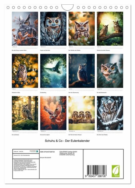 QUALITÄT - Hochwertiger Fotokalender mit 12 wunderschönen Motiven auf lichtbeständigem Bilderdruckpapier, robuste Spiralbindung mit Aufhängebügel.NACHHALTIG - deutliche Abfallreduzierung durch bedarfsgerechte Einzelstückfertigung, umweltfreundliches FSC-zertifiziertes Papier, Produktion in Deutschland, klimabewusste Logistik.PERFEKTES GESCHENK - Kalender für Freunde und Familie, für Kinder und Erwachsene, jung und alt, zu Weihnachten, Geburtstag oder zwischendurch.VIELFALT - Bildkalender in verschiedenen Formaten, z.B. DIN A5, DIN A4, DIN A3 sowie DIN A2. Ob Naturmotiv, Gemälde oder Fotos, ideal für ein persönliches Wohlfühlambiente.Zauberhafte Eulen: Wächter der Nacht. von Autor(in): Simone Wunderlich