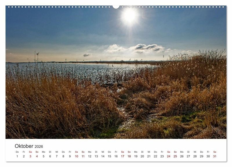 Oktober: Naturschutzgebiet Beltringharder Koog im Licht der tief stehenden Sonne über der Nordstrander Bucht