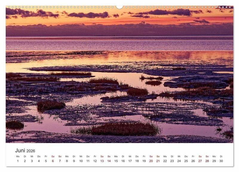 Juni: Abendrot am Wattenmeer vor der nordfriesischen Küste an der Friedrichskoog-Spitze