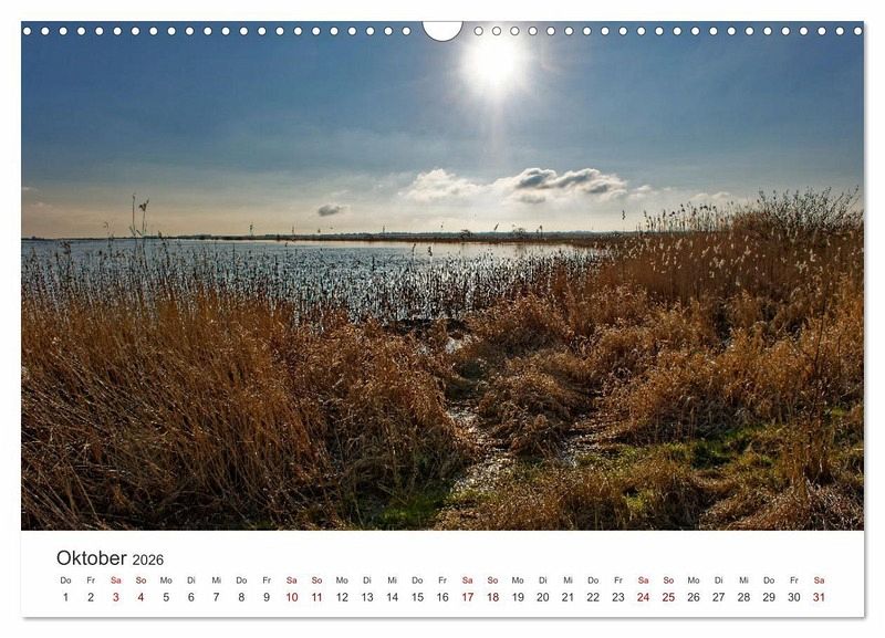Oktober: Naturschutzgebiet Beltringharder Koog im Licht der tief stehenden Sonne über der Nordstrander Bucht