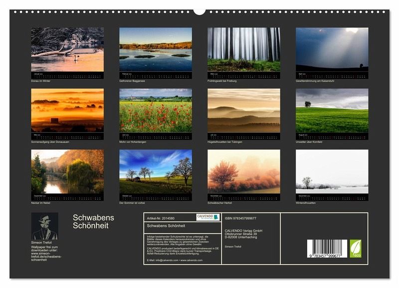 PREMIUM-LINIE - Brillanter Fotokalender mit 12 wunderschönen Motiven, Kunstdruck in Hochglanz in Museumsqualität.QUALITÄT - edle Materialien, stabile Rückwand mit 2 innovativen Einstecktaschen für eine optimale Präsentation an der Wand.NACHHALTIG - deutliche Abfallreduzierung durch bedarfsgerechte Einzelstückfertigung, umweltfreundliches FSC-zertifiziertes Papier, Produktion in Deutschland, klimabewusste Logistik.PERFEKTES GESCHENK - Kalender für Freunde und Familie, für Kinder und Erwachsene, jung und alt, zu Weihnachten, Geburtstag oder zwischendurch.12 atemberaubende Bilder aus Deutschlands schönem Süd-Westen von Autor(in): Simeon Trefoil