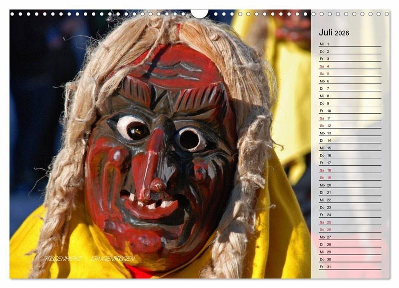 Die Fasnet ist die südwestdeutsche Variante des Karneval. Die Figuren der Fasnet haben meist geschnitzte Masken aus Holz sowie farbenfrohe Kostüme (Häser) und existieren zum Teil seit Jahrhunderten. Tragen sie ihre Termine, Geburtstage bequem in diesen Planer ein.
