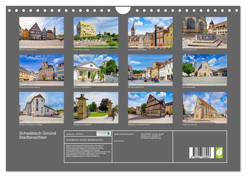 Historische Bauten und Sehenswürdigkeiten, aber auch moderne Wahrzeichen wie das Gold- und Silberforum, das ist die bezaubernde einmalige Stadt Schwäbisch Gmünd. Gehen Sie mit dem Fotografen Dirk Meutzner auf einen fotografischen Stadtspaziergang durch diese geniale Stadt. Sie werden Monat für Monat begeistert sein.