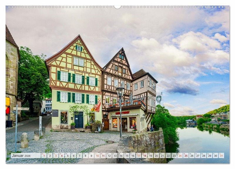 Der Fotograf Dirk Meutzner war für Sie in der wunderschönen Stadt Schwäbisch Hall und herausgekommen ist dieser einmalige Kalender. Es erwarten Sie einmalige Fachwerkbauten kleine Türmchen und so weiter, um es einfacher zu sagen eine Stadt wie aus dem Märchenbuch. Dieser Kalender ist auf jeden Fall ein farbenprächtiger Hingucker für das ganze Jahr.