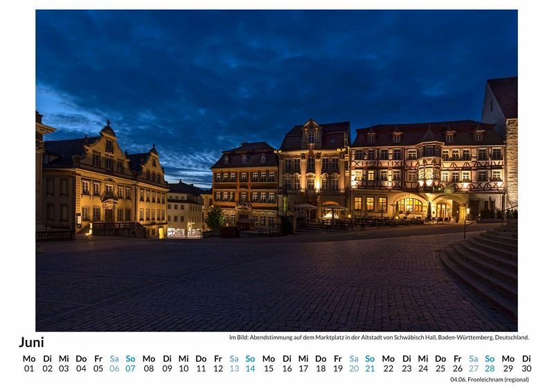 Entdecken Sie die malerische Schönheit von Schwäbisch Hall mit unserem exklusiven Wandkalender! Lassen Sie sich Monat für Monat von 12 liebevoll ausgewählten Motiven dieser charmanten Stadt verzaubern - von historischen Fachwerkhäusern bis hin zu idyllischen Landschaften. Gedruckt auf hochwertigem, lichtbeständigem Bilderdruckpapier, bringt dieser Kalender die einzigartige Atmosphäre Schwäbisch Halls direkt in Ihr Zuhause. Nachhaltigkeit liegt uns am Herzen: Unsere Kalender werden in Deutschland auf FSC-zertifiziertem Papier produziert. Perfekt als Geschenk oder für die eigene Wand - holen Sie sich ein Stück schwäbische Tradition in Ihr Leben! Hochwertig Erleben Sie ein Jahr voller Eleganz mit unserem Premium-Fotokalender. Jedes der 12 Motive ist auf hochwertigem, lichtbeständigem Bilderdruckpapier gedruckt, um die Lebendigkeit jedes Bildes zu bewahren. Die robuste Spiralbindung gewährleistet Langlebigkeit und einfache Handhabung. Nachhaltig Unser Engagement für die Umwelt spiegelt sich in jedem Exemplar wider. Durch die Produktion auf Abruf reduzieren wir signifikant unseren Abfall. Wir verwenden ausschließlich umweltfreundliches, FSC-zertifiziertes Papier. Stolz gefertigt in Deutschland, achten wir bei unserer Logistik auf Klimaschutz, um unseren ökologischen Fußabdruck zu minimieren. Das ideale Geschenk Dieser Kalender ist das perfekte Präsent für jeden Anlass - ob Weihnachten, Geburtstage oder einfach als liebevolle Aufmerksamkeit zwischendurch. Geeignet für Freunde, Familie, Kinder und Erwachsene gleichermaßen, bereichert er jedes Zuhause mit seiner Vielfalt und Schönheit, unabhängig vom Alter der Beschenkten.