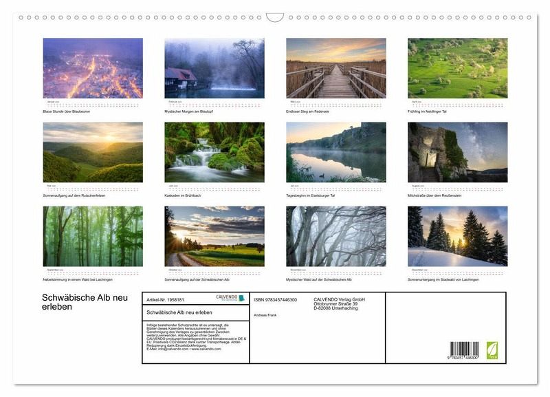 QUALITÄT - Hochwertiger Fotokalender mit 12 wunderschönen Motiven auf lichtbeständigem Bilderdruckpapier, robuste Spiralbindung mit Aufhängebügel.NACHHALTIG - deutliche Abfallreduzierung durch bedarfsgerechte Einzelstückfertigung, umweltfreundliches FSC-zertifiziertes Papier, Produktion in Deutschland, klimabewusste Logistik.PERFEKTES GESCHENK - Kalender für Freunde und Familie, für Kinder und Erwachsene, jung und alt, zu Weihnachten, Geburtstag oder zwischendurch.VIELFALT - Bildkalender in verschiedenen Formaten, z.B. DIN A5, DIN A4, DIN A3 sowie DIN A2. Ob Naturmotiv, Gemälde oder Fotos, ideal für ein persönliches Wohlfühlambiente.Eine Reise durch die Schwäbische Alb von Autor(in): Andreas Frank