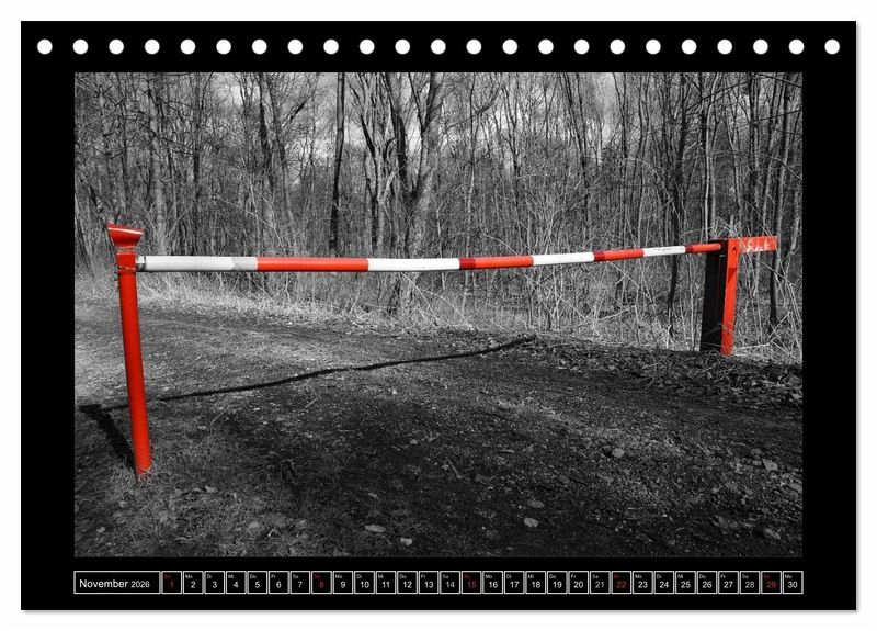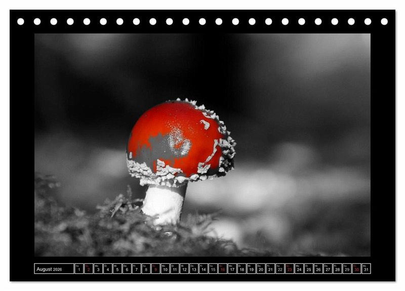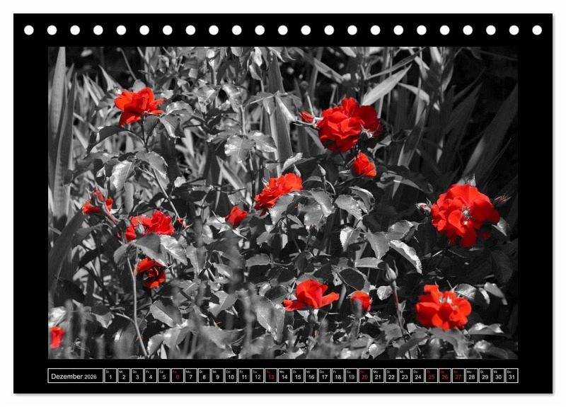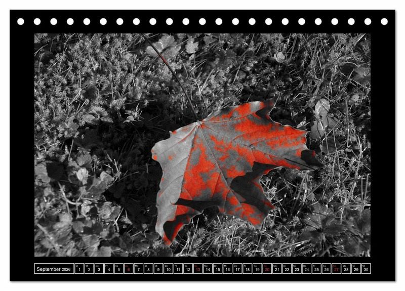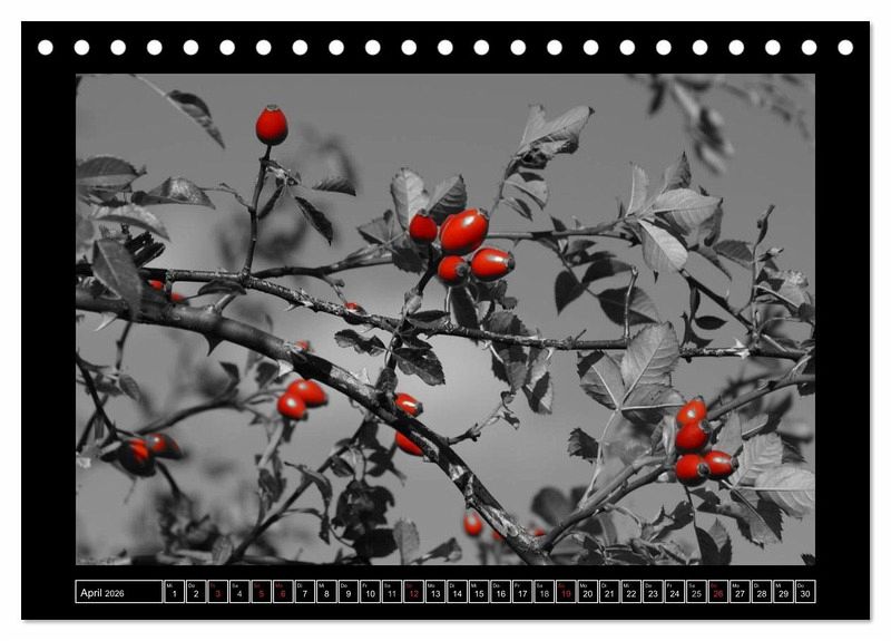 Ein besonderer Kalender in Schwarz-Weiß mit roten Spots.