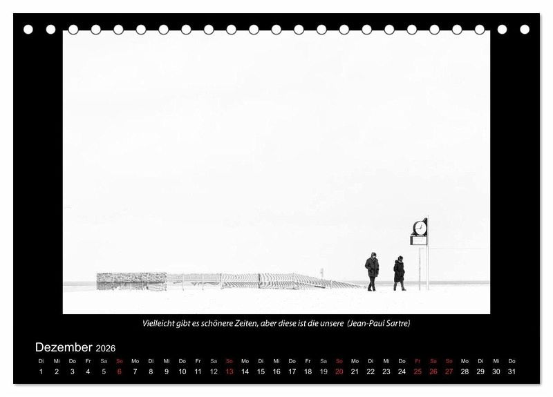 Gute Schwarz-Weiß-Fotos reduzieren eine Bildaussage auf das Wesentliche, sie sind klar und/oder mehrdeutig in Ihrer Aussage. Dies gilt auch für viele Sprichwörter und die Gedanken manch kluger Köpfe. Dieser Kalender verbindet das Bild mit dem Wort.