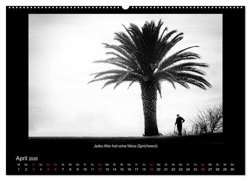 Gute Schwarz-Weiß-Fotos reduzieren eine Bildaussage auf das Wesentliche, sie sind klar und/oder mehrdeutig in Ihrer Aussage. Dies gilt auch für viele Sprichwörter und die Gedanken manch kluger Köpfe. Dieser Kalender verbindet das Bild mit dem Wort.