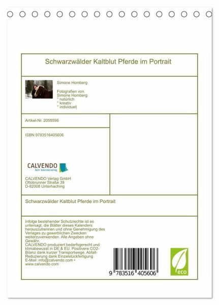 QUALITÄT - Hochwertiger Fotokalender mit 12 wunderschönen Motiven auf lichtbeständigem Bilderdruckpapier, robuste Spiralbindung.NACHHALTIG - deutliche Abfallreduzierung durch bedarfsgerechte Einzelstückfertigung, umweltfreundliches FSC-zertifiziertes Papier, Produktion in Deutschland, klimabewusste Logistik.PERFEKTES GESCHENK - Kalender für Freunde und Familie, für Kinder und Erwachsene, jung und alt, zu Weihnachten, Geburtstag oder zwischendurch.VIELFALT - Bildkalender in verschiedenen Formaten, z.B. DIN A5, DIN A4, DIN A3 sowie DIN A2. Ob Naturmotiv, Gemälde oder Fotos, ideal für ein persönliches Wohlfühlambiente.Ganz nah begleitet Sie das Schwarzwälder Kaltblut Pferd durch das Jahr von Autor(in): Simone Homberg