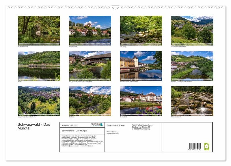 Dieser faszinierende Kalender vom Reisefotografen Peter Schickert zeigt einige der landschaftlichen Höhepunkte im sehenswerten Tal der Murg in Baden-Württemberg. Von der einsamen Idylle am Fluss bis zu verträumten Schwarzwald-Dörfern wie Gernsbach oder Weisenbach.