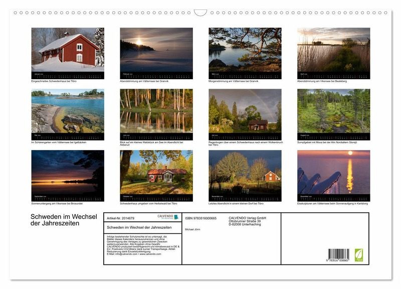 Lassen Sie sich von den herrlichen Lichtstimmungen und der schwedischen Landschaft verzaubern. In Schweden finden Sie eine faszinierende Natur- und Kulturlandschaft, welche wir in vielen Teilen von Europa nur noch selten antreffen. Holen Sie sich mit diesem Kalender ein Stück Schweden nach Hause...Monat für Monat ein ganzes Jahr lang.