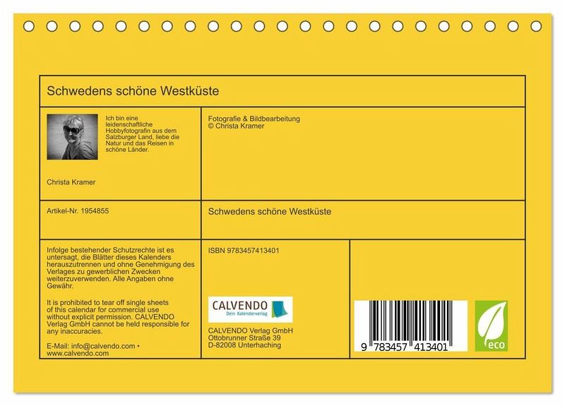 QUALITÄT - Hochwertiger Fotokalender mit 12 wunderschönen Motiven auf lichtbeständigem Bilderdruckpapier, robuste Spiralbindung.NACHHALTIG - deutliche Abfallreduzierung durch bedarfsgerechte Einzelstückfertigung, umweltfreundliches FSC-zertifiziertes Papier, Produktion in Deutschland, klimabewusste Logistik.PERFEKTES GESCHENK - Kalender für Freunde und Familie, für Kinder und Erwachsene, jung und alt, zu Weihnachten, Geburtstag oder zwischendurch.VIELFALT - Bildkalender in verschiedenen Formaten, z.B. DIN A5, DIN A4, DIN A3 sowie DIN A2. Ob Naturmotiv, Gemälde oder Fotos, ideal für ein persönliches Wohlfühlambiente.Beeindruckende Impressionen an der Westküste in Schweden von Autor(in): Christa Kramer