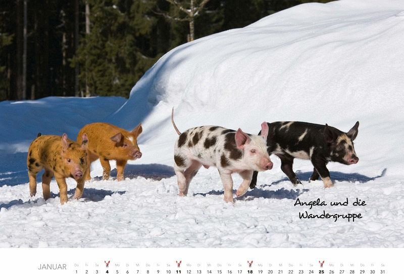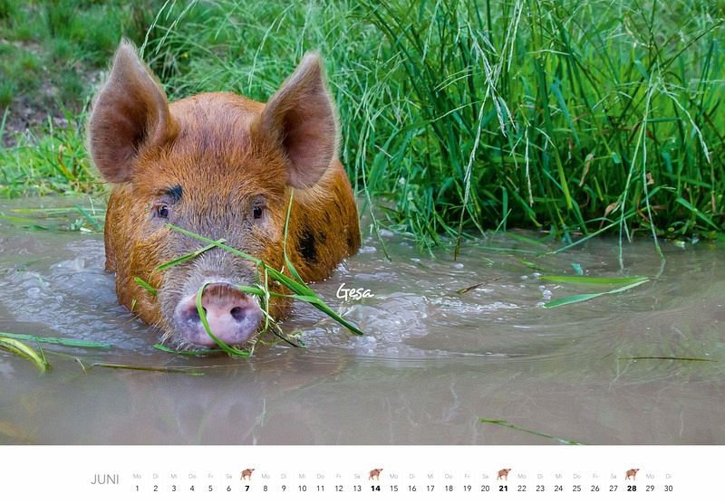 Dieser tolle Wandkalender im Posterformat ist genau das Richtige für kleine und große Schweine-Fans. Die klugen Tiere sind nicht nur abwechslungsreich und humorvoll in Szene gesetzt, zudem haben alle Schweine auch noch witzige und originelle Namen! Ob der vorwitzige Chuck im Schnee, Gerda und Olivia am Beach oder Happy Hansi, diese Fotos machen einfach gute Laune! Die großformatigen, perfekt fotografierten Aufnahmen sind ein wunderschöner Wandschmuck und der ideale Jahresbegleiter für alle Schweine-Freunde! Auch als Glücksbringer oder für Namensvetter eine tolle Geschenkidee. Mit großem Wandplaner für den perfekten Jahresüberblick! Hochwertige Ausstattung: - 14 Seiten Kunstdruckpapier - Cover mit Glanzlack veredelt - stabile Rückwand - silberne Spiralbindung - nachhaltig in Europa produziert.