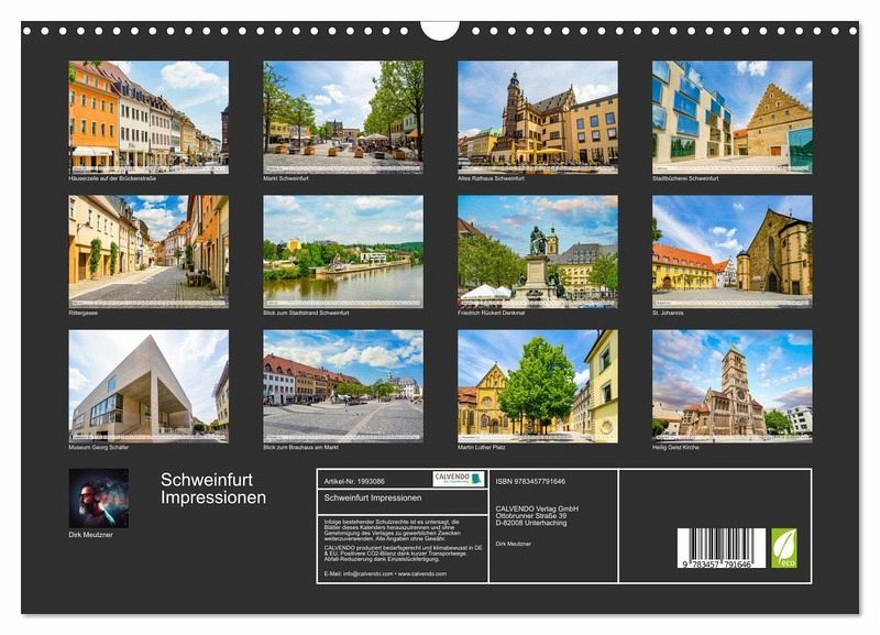 QUALITÄT - Hochwertiger Fotokalender mit 12 wunderschönen Motiven auf lichtbeständigem Bilderdruckpapier, robuste Spiralbindung mit Aufhängebügel.NACHHALTIG - deutliche Abfallreduzierung durch bedarfsgerechte Einzelstückfertigung, umweltfreundliches FSC-zertifiziertes Papier, Produktion in Deutschland, klimabewusste Logistik.PERFEKTES GESCHENK - Kalender für Freunde und Familie, für Kinder und Erwachsene, jung und alt, zu Weihnachten, Geburtstag oder zwischendurch.VIELFALT - Bildkalender in verschiedenen Formaten, z.B. DIN A5, DIN A4, DIN A3 sowie DIN A2. Ob Naturmotiv, Gemälde oder Fotos, ideal für ein persönliches Wohlfühlambiente.Zwölf wunderschöne Bilder der Stadt Schweinfurt von Autor(in): Dirk Meutzner