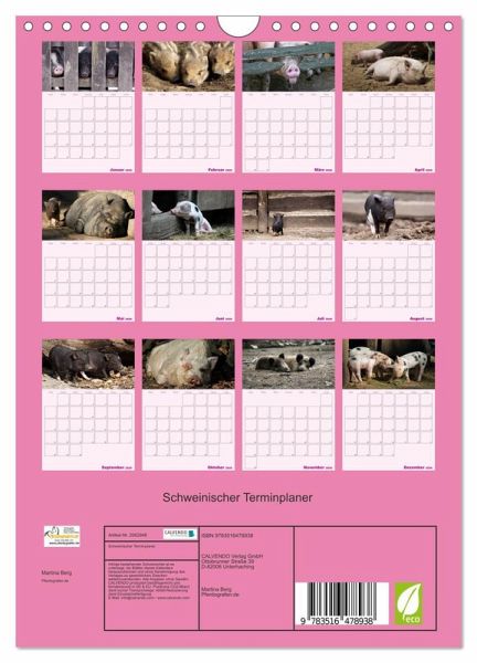 QUALITÄT - Hochwertiger Fotokalender mit 12 wunderschönen Motiven auf lichtbeständigem Bilderdruckpapier, robuste Spiralbindung mit Aufhängebügel.NACHHALTIG - deutliche Abfallreduzierung durch bedarfsgerechte Einzelstückfertigung, umweltfreundliches FSC-zertifiziertes Papier, Produktion in Deutschland, klimabewusste Logistik.PERFEKTES GESCHENK - Kalender für Freunde und Familie, für Kinder und Erwachsene, jung und alt, zu Weihnachten, Geburtstag oder zwischendurch.VIELFALT - Bildkalender in verschiedenen Formaten, z.B. DIN A5, DIN A4, DIN A3 sowie DIN A2. Ob Naturmotiv, Gemälde oder Fotos, ideal für ein persönliches Wohlfühlambiente.Terminplaner mit kleinen und großen Schweinen von Autor(in): Martina Berg
