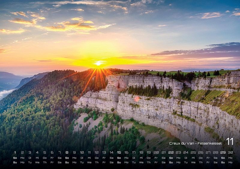 Die Schweiz im Herzen Europas - lasst euch von 14 faszinierende Aufnahmen die Schönheit der Schweiz in euer Wohnzimmer bringen. Es erwarten euch wundervolle Sehenswürdigkeiten und Landschaften aus der Schweiz. Seid gespannt und sichert euch euer Exemplar im Format DIN A3, DIN A2 (extragroß) für das Jahr 2026!