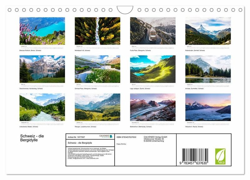In der Schweiz kann man einmalige Naturschönheiten erleben. Wunderschöne Bergkulissen lassen einen die Alltagssorgen für einen Moment vergessen und erinnern einen daran, wie schön es ist, im Hier und Jetzt zu sein. Schweiz ist ein Land in dem man innehalten und viel Kraft tanken kann. Dieses Erlebnis versteckt sich auch in jedem der 12 Kalenderfotos.