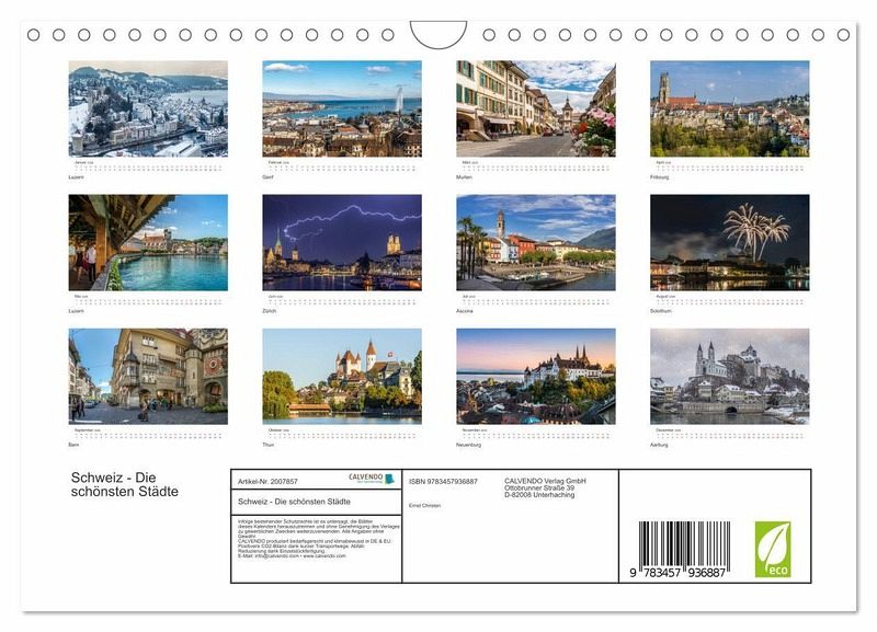 QUALITÄT - Hochwertiger Fotokalender mit 12 wunderschönen Motiven auf lichtbeständigem Bilderdruckpapier, robuste Spiralbindung mit Aufhängebügel.NACHHALTIG - deutliche Abfallreduzierung durch bedarfsgerechte Einzelstückfertigung, umweltfreundliches FSC-zertifiziertes Papier, Produktion in Deutschland, klimabewusste Logistik.PERFEKTES GESCHENK - Kalender für Freunde und Familie, für Kinder und Erwachsene, jung und alt, zu Weihnachten, Geburtstag oder zwischendurch.VIELFALT - Bildkalender in verschiedenen Formaten, z.B. DIN A5, DIN A4, DIN A3 sowie DIN A2. Ob Naturmotiv, Gemälde oder Fotos, ideal für ein persönliches Wohlfühlambiente.Die schönsten Städte der Schweiz in den vier Jahreszeiten von Autor(in): Ernst Christen