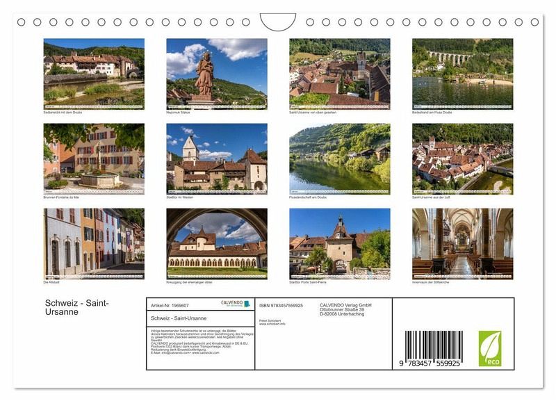 Dieser faszinierende Kalender vom Reisefotografen Peter Schickert nimmt Sie auf 12 eindrucksvollen Farbfotos mit in das äußerst sehenswerte mittelalterliche Schweizer Städtchen Saint-Ursanne an der Grenze zu Frankreich.