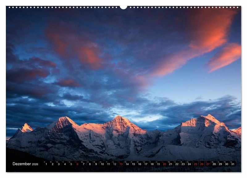 Dezember: Eiger, Mönch und Jungfrau in der Abendsonne, Berner Oberland