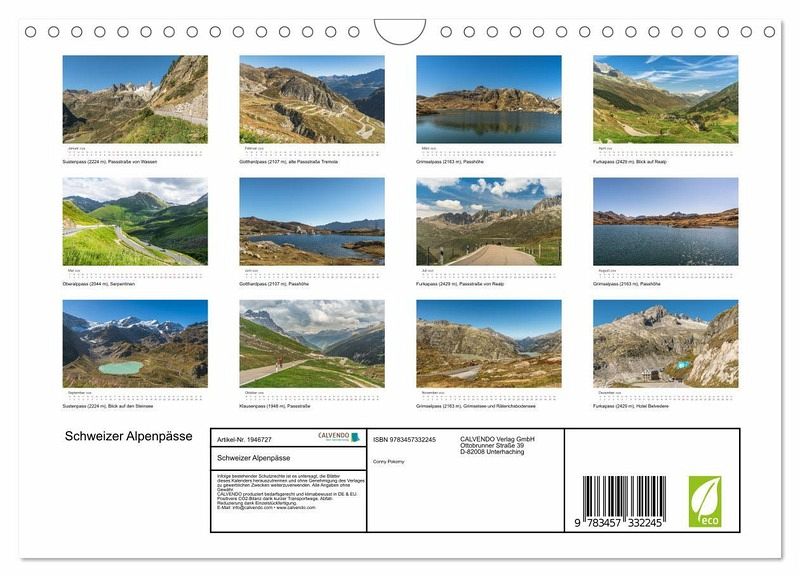 QUALITÄT - Hochwertiger Fotokalender mit 12 wunderschönen Motiven auf lichtbeständigem Bilderdruckpapier, robuste Spiralbindung mit Aufhängebügel.NACHHALTIG - deutliche Abfallreduzierung durch bedarfsgerechte Einzelstückfertigung, umweltfreundliches FSC-zertifiziertes Papier, Produktion in Deutschland, klimabewusste Logistik.PERFEKTES GESCHENK - Kalender für Freunde und Familie, für Kinder und Erwachsene, jung und alt, zu Weihnachten, Geburtstag oder zwischendurch.VIELFALT - Bildkalender in verschiedenen Formaten, z.B. DIN A5, DIN A4, DIN A3 sowie DIN A2. Ob Naturmotiv, Gemälde oder Fotos, ideal für ein persönliches Wohlfühlambiente.Eine Reise über sechs Gebirgspässe durch 5 Kantone der Schweiz. Grimselpass, Furkapass, Sustenpass, Gotthardpass, Oberalppass und Klausenpass von Autor(in): Conny Pokorny