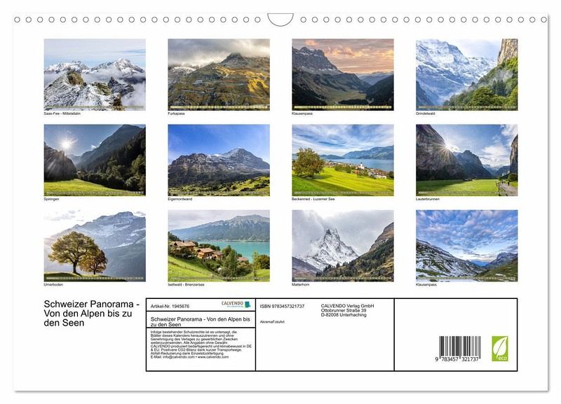 QUALITÄT - Hochwertiger Fotokalender mit 12 wunderschönen Motiven auf lichtbeständigem Bilderdruckpapier, robuste Spiralbindung mit Aufhängebügel.NACHHALTIG - deutliche Abfallreduzierung durch bedarfsgerechte Einzelstückfertigung, umweltfreundliches FSC-zertifiziertes Papier, Produktion in Deutschland, klimabewusste Logistik.PERFEKTES GESCHENK - Kalender für Freunde und Familie, für Kinder und Erwachsene, jung und alt, zu Weihnachten, Geburtstag oder zwischendurch.VIELFALT - Bildkalender in verschiedenen Formaten, z.B. DIN A5, DIN A4, DIN A3 sowie DIN A2. Ob Naturmotiv, Gemälde oder Fotos, ideal für ein persönliches Wohlfühlambiente.Atemberaubende Ansichten von den majestätischen Alpen bis zu idyllischen Seen von Autor(in): Andreas Kretschmar
