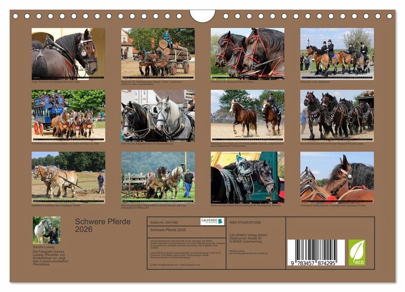 QUALITÄT - Hochwertiger Fotokalender mit 12 wunderschönen Motiven auf lichtbeständigem Bilderdruckpapier, robuste Spiralbindung mit Aufhängebügel.NACHHALTIG - deutliche Abfallreduzierung durch bedarfsgerechte Einzelstückfertigung, umweltfreundliches FSC-zertifiziertes Papier, Produktion in Deutschland, klimabewusste Logistik.PERFEKTES GESCHENK - Kalender für Freunde und Familie, für Kinder und Erwachsene, jung und alt, zu Weihnachten, Geburtstag oder zwischendurch.VIELFALT - Bildkalender in verschiedenen Formaten, z.B. DIN A5, DIN A4, DIN A3 sowie DIN A2. Ob Naturmotiv, Gemälde oder Fotos, ideal für ein persönliches Wohlfühlambiente.Schwere Pferde, mächtige, faszinierende Rösser, porträtiert in zwölf meisterhaften Fotos. von Autor(in): Sandra Ludwig