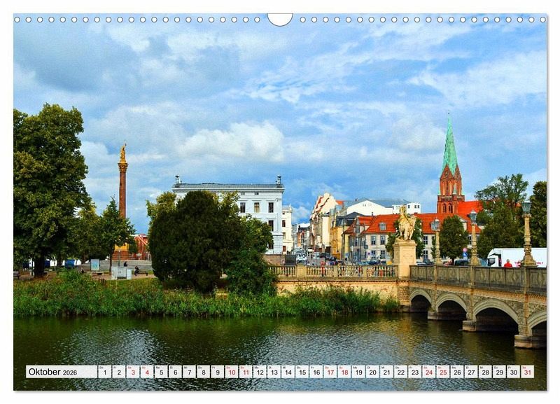 Oktober: Schwerins Zentrum mit Schlossbrücke, Dom und Siegessäule