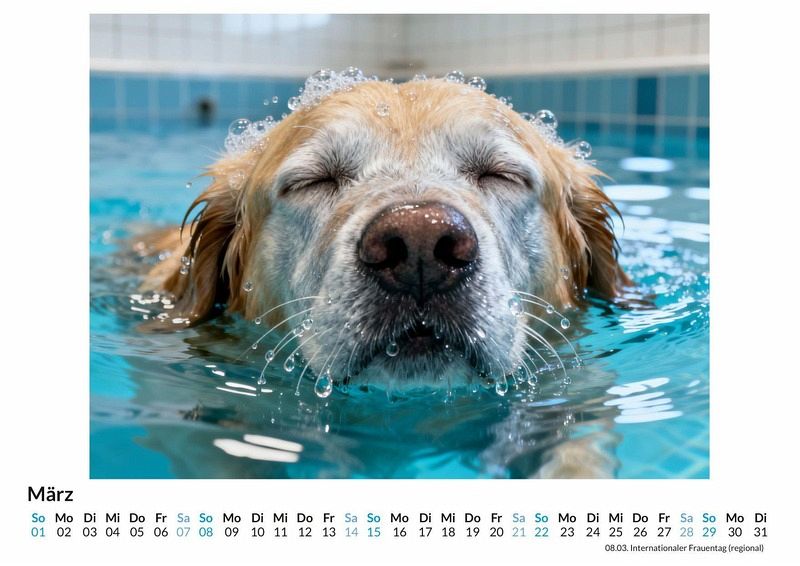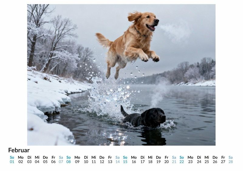 Ein Spritzer, ein lautes Platschen und dann pure Lebensfreude. Der Kalender "Schwimmende Hunde" fängt den Moment ein, in dem Hunde das Wasser für sich entdecken. Er zelebriert die ungestüme Energie, die entsteht, wenn vier Pfoten auf nasses Element treffen. Dieser Kalender ist eine ausgezeichnete Wahl: Für alle, die das ungestüme und ehrliche Wesen von Hunden lieben. Für Menschen, die Freude an komischen und authentischen Tiermomenten haben. Als besonderes Geschenk für Freunde und Familie mit einem Sinn für Humor. Jedes Monatsblatt zeigt eine andere Facette des nassen Vergnügens. Mal ist es der verdutzte Blick eines Labradors, der gerade untergetaucht ist, mal der kraftvolle Absprung eines Schäferhundes vom Steg. Die Motive für diese Bildserie wurden mit Hilfe fortschrittlicher Algorithmen und einer kreativen Idee konzipiert, um die Dynamik des Wassers und die unbändige Energie der Tiere einzufangen. Die Bilder zeigen eine Bandbreite von Emotionen, von konzentrierter Anstrengung bis hin zu purer, unkoordinierter Panik. Was der Kalender bietet: Zwölf einzigartige Monatsmotive voller Action und Humor. Ein praktisches Kalendarium für die Organisation des Alltags. Großformatige Bilder, die auf jeder Seite für einen Lacher sorgen. Dieser Kalender ist eine Hommage an die unbeschwerte und manchmal chaotische Beziehung zwischen Hunden und dem Wasser. Eine Sammlung, die das ganze Jahr über ein Lächeln ins Gesicht zaubert. Es lohnt sich, einen Blick auf die einzelnen Monatsblätter zu werfen und sich von der Energie anstecken zu lassen.