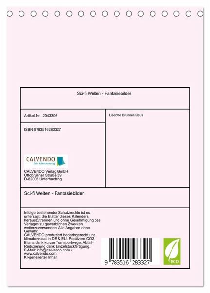 QUALITÄT - Hochwertiger Fotokalender mit 12 wunderschönen Motiven auf lichtbeständigem Bilderdruckpapier, robuste Spiralbindung.NACHHALTIG - deutliche Abfallreduzierung durch bedarfsgerechte Einzelstückfertigung, umweltfreundliches FSC-zertifiziertes Papier, Produktion in Deutschland, klimabewusste Logistik.PERFEKTES GESCHENK - Kalender für Freunde und Familie, für Kinder und Erwachsene, jung und alt, zu Weihnachten, Geburtstag oder zwischendurch.VIELFALT - Bildkalender in verschiedenen Formaten, z.B. DIN A5, DIN A4, DIN A3 sowie DIN A2. Ob Naturmotiv, Gemälde oder Fotos, ideal für ein persönliches Wohlfühlambiente.Zukunft und Imagination in KI-Bildern von Autor(in): Liselotte Brunner-Klaus