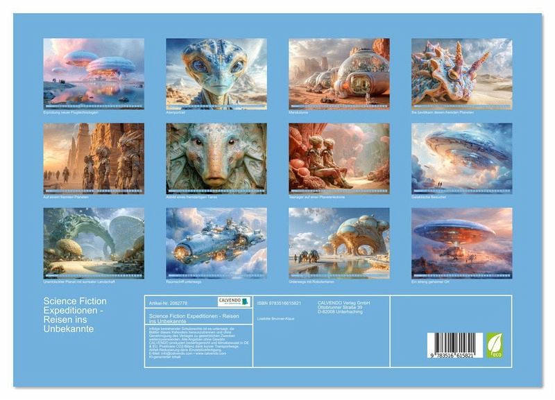 PREMIUM-LINIE - Brillanter Fotokalender mit 12 wunderschönen Motiven, Kunstdruck in Hochglanz in Museumsqualität.QUALITÄT - edle Materialien, stabile Rückwand mit 2 innovativen Einstecktaschen für eine optimale Präsentation an der Wand.NACHHALTIG - deutliche Abfallreduzierung durch bedarfsgerechte Einzelstückfertigung, umweltfreundliches FSC-zertifiziertes Papier,Produktion in Deutschland, klimabewusste Logistik.PERFEKTES GESCHENK - Kalender für Freunde und Familie, für Kinder und Erwachsene, jung und alt, zu Weihnachten, Geburtstag oder zwischendurch.Intergalaktischen Erzählungen von Autor(in): Liselotte Brunner-Klaus