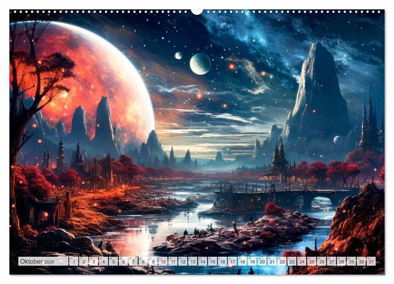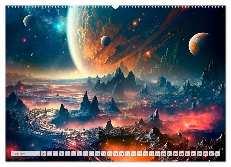 Die technologische Weiterentwicklung steigert die Zukunftserwartungen ins Phantastische. Reisen durch das Universum sowie ein mögliches Leben auf anderen Planeten rücken immer weiter in den Fokus der Gesellschaft. Die ersten Schritte sind gemacht; die Zukunft wird zeigen, was noch alles möglich wird. Mit Hilfe Künstlicher Intelligenz wurden 12 imposante fiktive Motive aus dem All erschaffen.