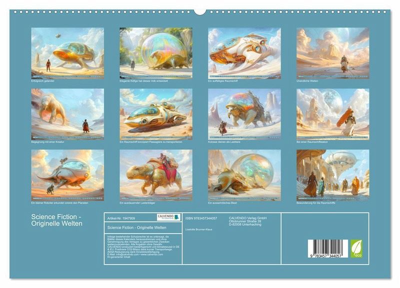 PREMIUM-LINIE - Brillanter Fotokalender mit 12 wunderschönen Motiven, Kunstdruck in Hochglanz in Museumsqualität.QUALITÄT - edle Materialien, stabile Rückwand mit 2 innovativen Einstecktaschen für eine optimale Präsentation an der Wand.NACHHALTIG - deutliche Abfallreduzierung durch bedarfsgerechte Einzelstückfertigung, umweltfreundliches FSC-zertifiziertes Papier, Produktion in Deutschland, klimabewusste Logistik.PERFEKTES GESCHENK - Kalender für Freunde und Familie, für Kinder und Erwachsene, jung und alt, zu Weihnachten, Geburtstag oder zwischendurch.Zukunftsvisionen im Science Fiction Stil von Autor(in): Liselotte Brunner-Klaus