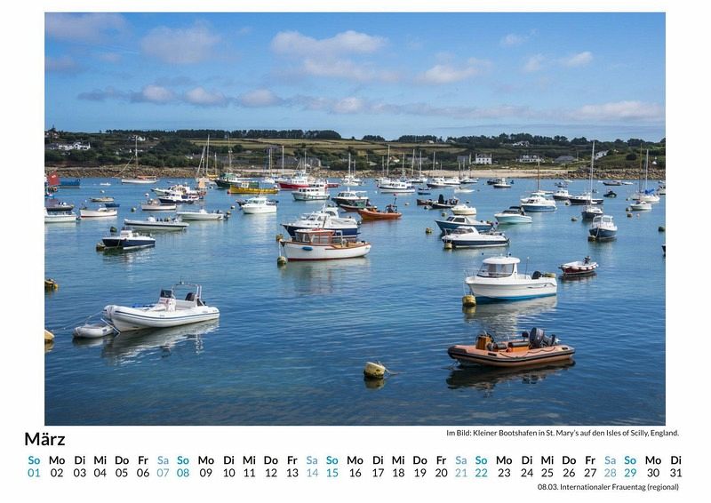 Entdecken Sie die atemberaubende Schönheit der Scilly-Inseln mit unserem exklusiven Wandkalender! Die 12 sorgfältig ausgewählten Motive entführen Sie Monat für Monat in die malerische Inselwelt vor der Küste Englands. Genießen Sie traumhafte Strände, idyllische Landschaften und das einzigartige Flair der Isles of Scilly - festgehalten auf hochwertigem, lichtbeständigem Bilderdruckpapier. Gedruckt in Deutschland auf FSC-zertifiziertem Papier, vereint dieser Kalender Nachhaltigkeit und höchste Qualität. Perfekt für Ihr Zuhause oder als Geschenk für Naturliebhaber. Holen Sie sich ein Stück Inselparadies an Ihre Wand und lassen Sie sich das ganze Jahr über inspirieren! Hochwertig Erleben Sie ein Jahr voller Eleganz mit unserem Premium-Fotokalender. Jedes der 12 Motive ist auf hochwertigem, lichtbeständigem Bilderdruckpapier gedruckt, um die Lebendigkeit jedes Bildes zu bewahren. Die robuste Spiralbindung gewährleistet Langlebigkeit und einfache Handhabung. Nachhaltig Unser Engagement für die Umwelt spiegelt sich in jedem Exemplar wider. Durch die Produktion auf Abruf reduzieren wir signifikant unseren Abfall. Wir verwenden ausschließlich umweltfreundliches, FSC-zertifiziertes Papier. Stolz gefertigt in Deutschland, achten wir bei unserer Logistik auf Klimaschutz, um unseren ökologischen Fußabdruck zu minimieren. Das ideale Geschenk Dieser Kalender ist das perfekte Präsent für jeden Anlass - ob Weihnachten, Geburtstage oder einfach als liebevolle Aufmerksamkeit zwischendurch. Geeignet für Freunde, Familie, Kinder und Erwachsene gleichermaßen, bereichert er jedes Zuhause mit seiner Vielfalt und Schönheit, unabhängig vom Alter der Beschenkten.