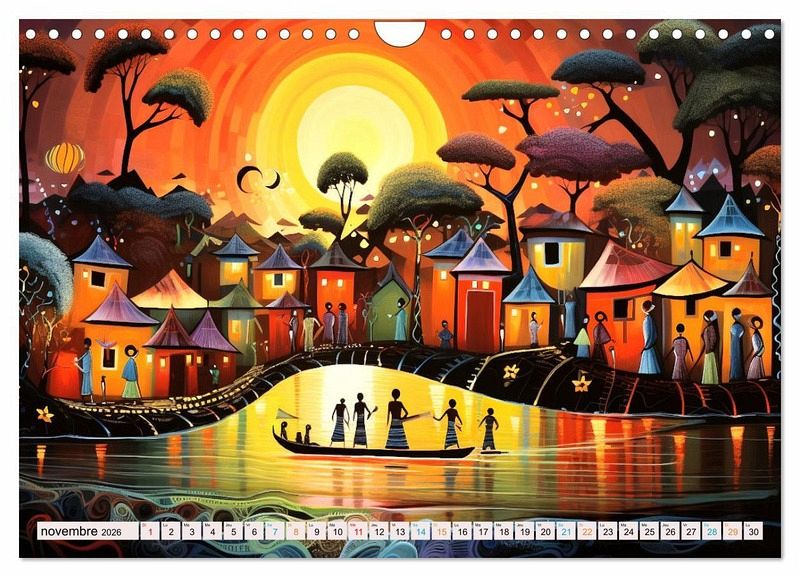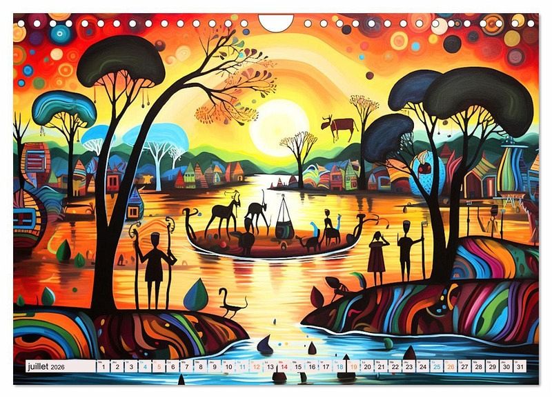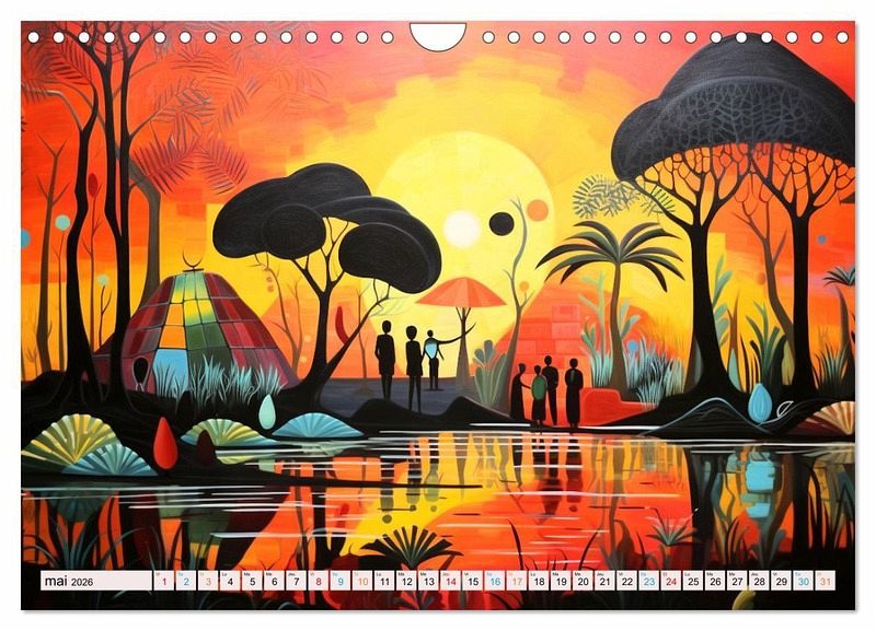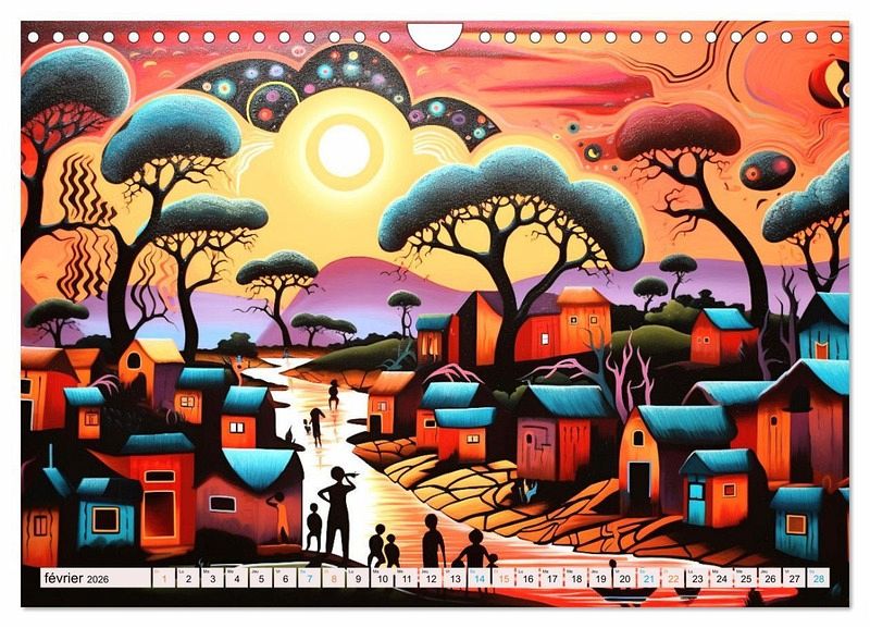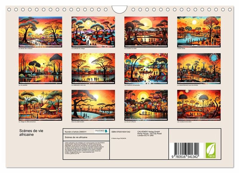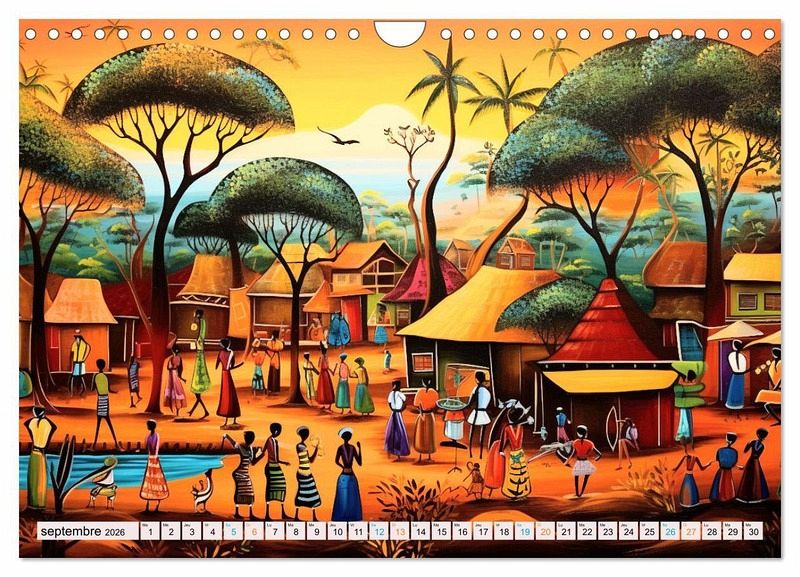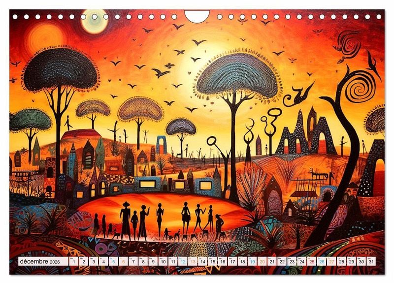 Laissez-vous transporter dans un voyage visuel à travers des illustrations aux couleurs flamboyantes et chaudes vers des horizons lointains. Chaque mois présente une oeuvre d'art mettant en avant la beauté, la diversité et la vitalité de l'Afrique invitant au voyage à l'évasion. Un calendrier qui sublimera et égayera incontestablement votre intérieur.