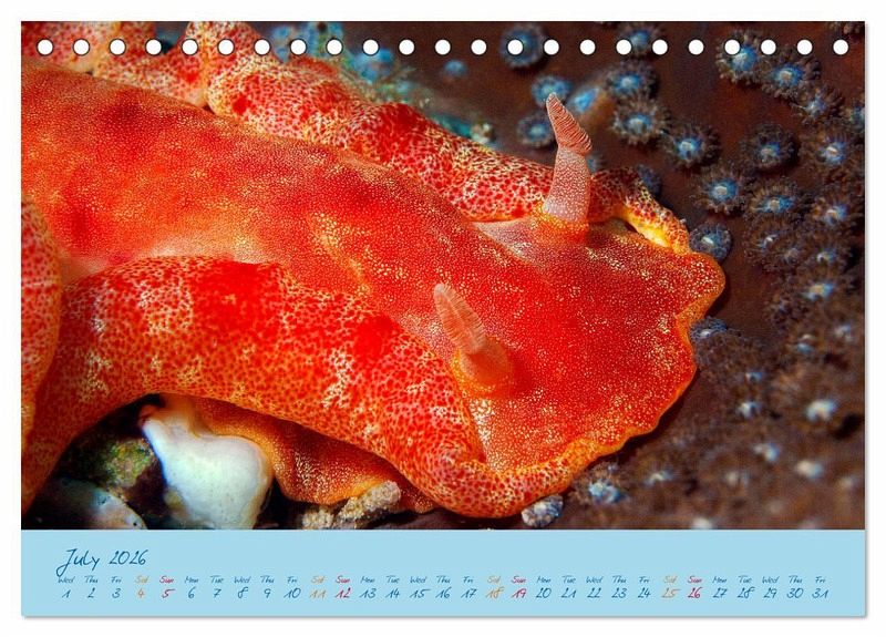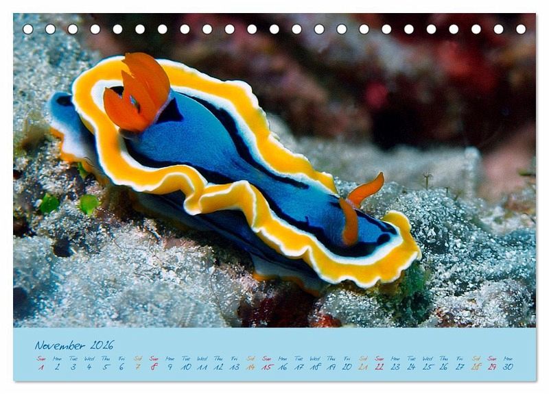 Discover the world of sea slugs with stunning underwater photos. Each month reveals the diverse beauty of these sea creatures. Under dive lights, the underwater world bursts into amazing colors, showcasing colorful and varied sea life, graceful nudibranchs, and magnificent shelled sea slugs. This calendar celebrates the beauty of life beneath the waves. Be enchanted by these vibrant images!