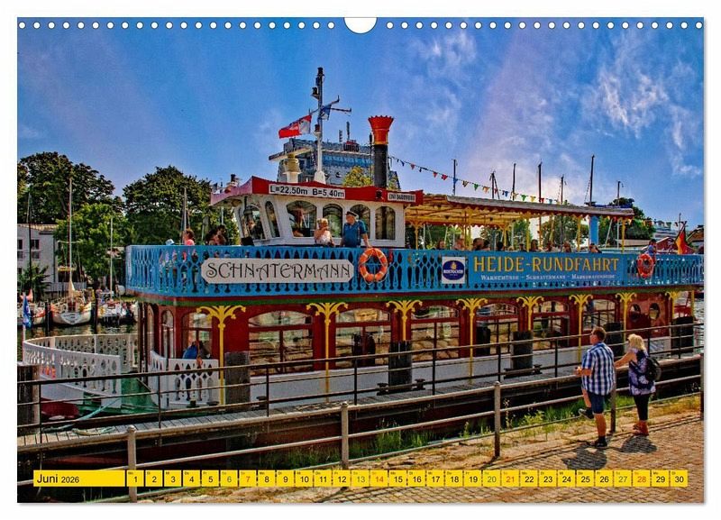 Juni: Ausflugsschiff am Warnemünder Alten Strom