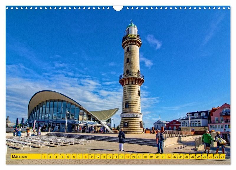 März: Der Warnemünder Leuchtturm mit Aussichtsplattform