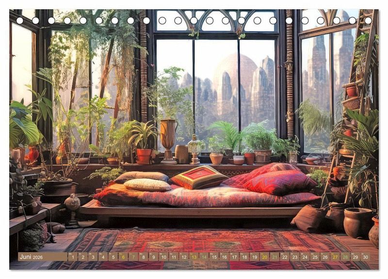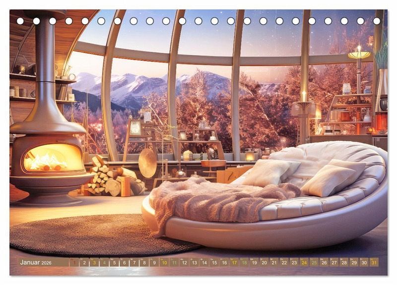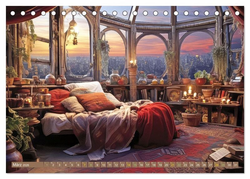 Entdecken Sie die Seelenräume voller Harmonie mit unserem einzigartigen Kalender. Lassen Sie sich von gemütlichen, manchmal bohemienhaften Wohnungen verzaubern, die mit großen runden Fenstern und einem atemberaubenden Ausblick begeistern. Erleben Sie das Gefühl von Geborgenheit und Entspannung, umgeben von Kerzenlicht, einem knisternden Kaminofen oder auch mit kuscheligen Sofas mit Decken und Kissen. Jeder Raum strahlt eine einladende Atmosphäre aus, in der man am liebsten sofort einziehen möchte. Holen Sie sich diesen Kalender und lassen Sie sich jeden Monat aufs Neue von den Seelenräumen voller Harmonie inspirieren. Die gezeigten Bilder wurden mit Hilfe der KI erstellt.