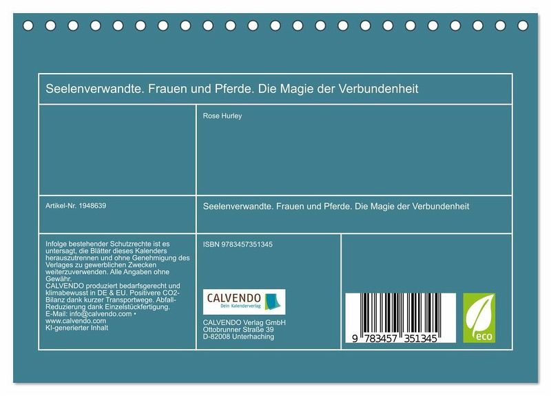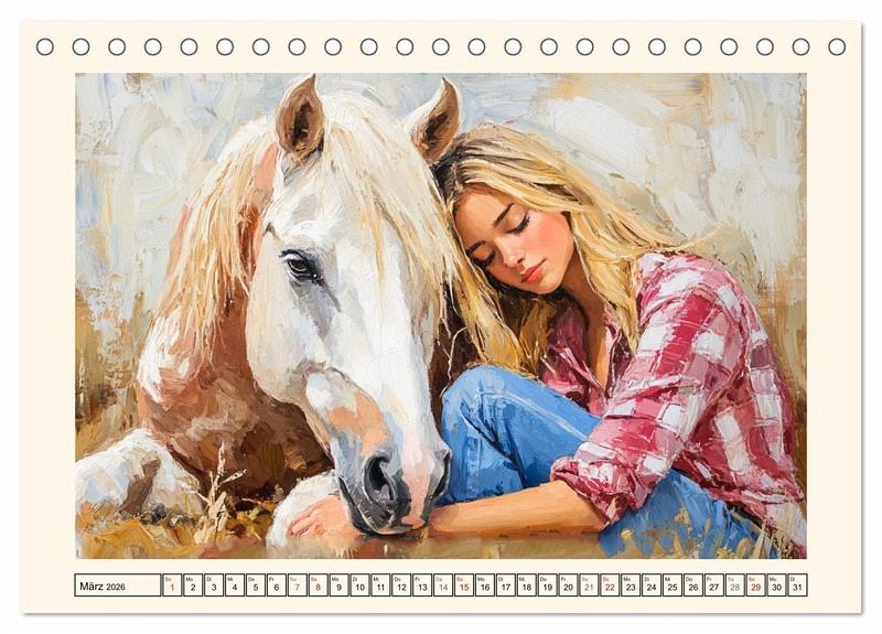 QUALITÄT - Hochwertiger Fotokalender mit 12 wunderschönen Motiven auf lichtbeständigem Bilderdruckpapier, robuste Spiralbindung.NACHHALTIG - deutliche Abfallreduzierung durch bedarfsgerechte Einzelstückfertigung, umweltfreundliches FSC-zertifiziertes Papier, Produktion in Deutschland, klimabewusste Logistik.PERFEKTES GESCHENK - Kalender für Freunde und Familie, für Kinder und Erwachsene, jung und alt, zu Weihnachten, Geburtstag oder zwischendurch.VIELFALT - Bildkalender in verschiedenen Formaten, z.B. DIN A5, DIN A4, DIN A3 sowie DIN A2. Ob Naturmotiv, Gemälde oder Fotos, ideal für ein persönliches Wohlfühlambiente.Die tiefe Verbindung zwischen Frauen und Pferden im Ölbilder-Stil von Autor(in): Rose Hurley