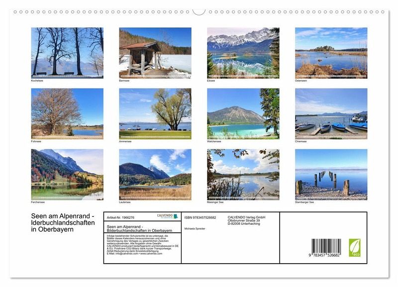 PREMIUM-LINIE - Brillanter Fotokalender mit 12 wunderschönen Motiven, Kunstdruck in Hochglanz in Museumsqualität.QUALITÄT - edle Materialien, stabile Rückwand mit 2 innovativen Einstecktaschen für eine optimale Präsentation an der Wand.NACHHALTIG - deutliche Abfallreduzierung durch bedarfsgerechte Einzelstückfertigung, umweltfreundliches FSC-zertifiziertes Papier, Produktion in Deutschland, klimabewusste Logistik.PERFEKTES GESCHENK - Kalender für Freunde und Familie, für Kinder und Erwachsene, jung und alt, zu Weihnachten, Geburtstag oder zwischendurch.Malerische Impressionen der bayerischen Seen von Autor(in): Michaela Spreider
