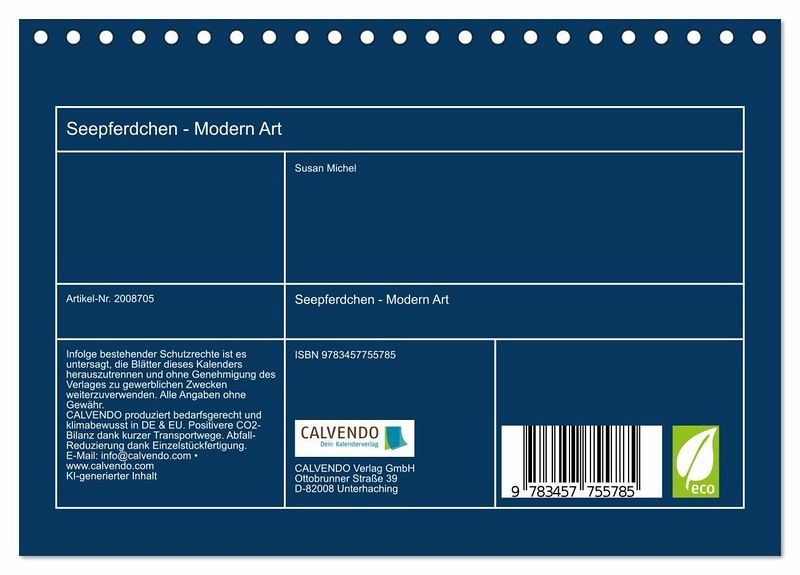 QUALITÄT - Hochwertiger Fotokalender mit 12 wunderschönen Motiven auf lichtbeständigem Bilderdruckpapier, robuste Spiralbindung.NACHHALTIG - deutliche Abfallreduzierung durch bedarfsgerechte Einzelstückfertigung, umweltfreundliches FSC-zertifiziertes Papier, Produktion in Deutschland, klimabewusste Logistik.PERFEKTES GESCHENK - Kalender für Freunde und Familie, für Kinder und Erwachsene, jung und alt, zu Weihnachten, Geburtstag oder zwischendurch.VIELFALT - Bildkalender in verschiedenen Formaten, z.B. DIN A5, DIN A4, DIN A3 sowie DIN A2. Ob Naturmotiv, Gemälde oder Fotos, ideal für ein persönliches Wohlfühlambiente.Form trifft Fantasie - Seepferdchen reloaded von Autor(in): Susan Michel
