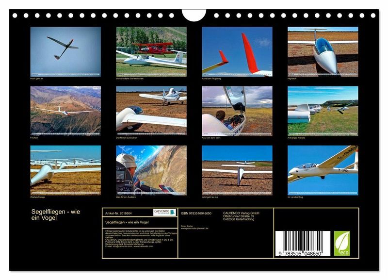 QUALITÄT - Hochwertiger Fotokalender mit 12 wunderschönen Motiven auf lichtbeständigem Bilderdruckpapier, robuste Spiralbindung mit Aufhängebügel.NACHHALTIG - deutliche Abfallreduzierung durch bedarfsgerechte Einzelstückfertigung, umweltfreundliches FSC-zertifiziertes Papier, Produktion in Deutschland, klimabewusste Logistik.PERFEKTES GESCHENK - Kalender für Freunde und Familie, für Kinder und Erwachsene, jung und alt, zu Weihnachten, Geburtstag oder zwischendurch.VIELFALT - Bildkalender in verschiedenen Formaten, z.B. DIN A5, DIN A4, DIN A3 sowie DIN A2. Ob Naturmotiv, Gemälde oder Fotos, ideal für ein persönliches Wohlfühlambiente.Segelfliegen - lautlos durch die Lüfte gleiten, schwerelos der Sonne entgegen. von Autor(in): Peter Roder