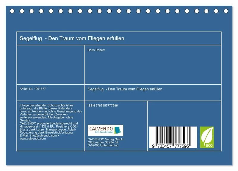 QUALITÄT - Hochwertiger Fotokalender mit 12 wunderschönen Motiven auf lichtbeständigem Bilderdruckpapier, robuste Spiralbindung.NACHHALTIG - deutliche Abfallreduzierung durch bedarfsgerechte Einzelstückfertigung, umweltfreundliches FSC-zertifiziertes Papier, Produktion in Deutschland, klimabewusste Logistik.PERFEKTES GESCHENK - Kalender für Freunde und Familie, für Kinder und Erwachsene, jung und alt, zu Weihnachten, Geburtstag oder zwischendurch.VIELFALT - Bildkalender in verschiedenen Formaten, z.B. DIN A5, DIN A4, DIN A3 sowie DIN A2. Ob Naturmotiv, Gemälde oder Fotos, ideal für ein persönliches Wohlfühlambiente.Nahezu schwerelos dem Himmel entgegen - das ist Segelfliegen! von Autor(in): Boris Flör