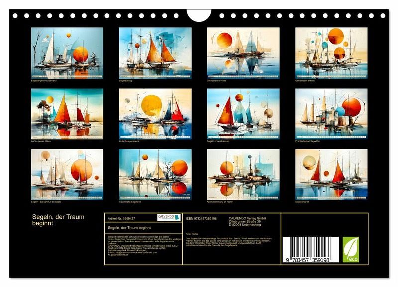 QUALITÄT - Hochwertiger Fotokalender mit 12 wunderschönen Motiven auf lichtbeständigem Bilderdruckpapier, robuste Spiralbindung mit Aufhängebügel.NACHHALTIG - deutliche Abfallreduzierung durch bedarfsgerechte Einzelstückfertigung, umweltfreundliches FSC-zertifiziertes Papier, Produktion in Deutschland, klimabewusste Logistik.PERFEKTES GESCHENK - Kalender für Freunde und Familie, für Kinder und Erwachsene, jung und alt, zu Weihnachten, Geburtstag oder zwischendurch.VIELFALT - Bildkalender in verschiedenen Formaten, z.B. DIN A5, DIN A4, DIN A3 sowie DIN A2. Ob Naturmotiv, Gemälde oder Fotos, ideal für ein persönliches Wohlfühlambiente.Segeln - Wind, Wellen und endlose Freiheit von Autor(in): Peter Roder