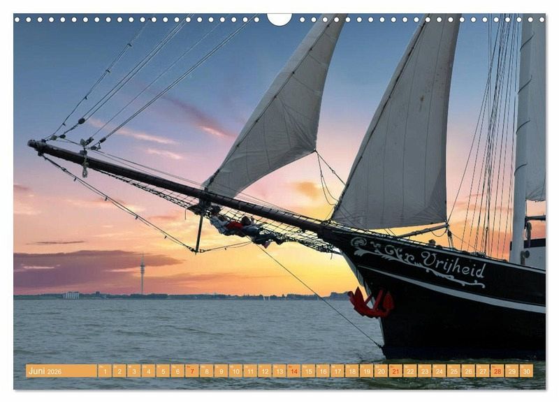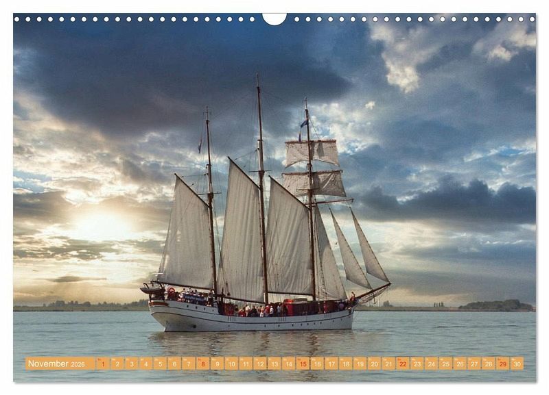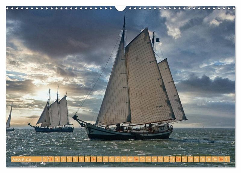 Segelschiffe segeln in die untergehenden Sonne, wenn da kein Fernweh aufkommt. Wenn diese Motive nicht in Urlaubsstimmung versetzen; lassen Sie jeden Monat neu von alten Traditionsseglern und modernen Yachten verzaubern.