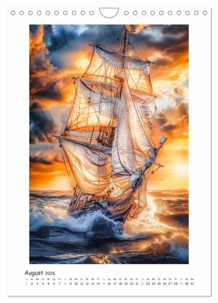 Träumst du von Abenteuern auf hoher See, umgeben von der majestätischen Schönheit der Segelschiffe? Dann ist es Zeit, deine Träume wahr werden zu lassen und an Bord unserer Flotte zu gehen. Segelnde Schönheit verkörpert die Perfektion des Segelns und lädt dich ein, in eine Welt voller Anmut und Faszination einzutauchen. Alle hier gezeigten Bilder wurden mit Sorgfalt, Liebe und mit Hilfe einer KI generiert. Abschließend werden sie mit Bildbearbeitungsprogrammen überarbeitet und in den Kalender eingefügt.