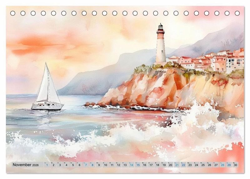 Erleben Sie die Magie der Küstenlandschaften mit unserem atemberaubenden KI Kalender. Jede Seite dieses einzigartigen Kalenders zeigt ein wunderschönes Aquarell, das die Schönheit von Segelbooten und Leuchttürmen in sanften, fließenden Farben einfängt. Lassen Sie sich jeden Monat von der Ruhe und Pracht der Küsten inspirieren und bringen Sie maritime Eleganz in Ihr Zuhause. Perfekt für Liebhaber des Meeres und der Kunst, die das ganze Jahr über von der Faszination der See begleitet werden möchten. Ideal auch als Geschenk für Freunde und Familie, die das Besondere schätzen.
